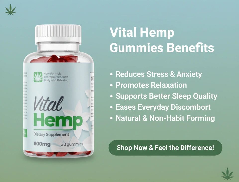 Vital Hemp Gummies Australia is a plant-based dietary supplement designed to support overall wellness using hemp-derived extracts. With the growing popularity of natural health solutions in Australia, hemp-based supplements have become widely discussed for their potential role in stress management, relaxation, sleep quality, and general well-being. Vital Hemp Gummies are marketed as an easy-to-consume, flavorful alternative to oils and capsules, offering convenience along with wellness support.
